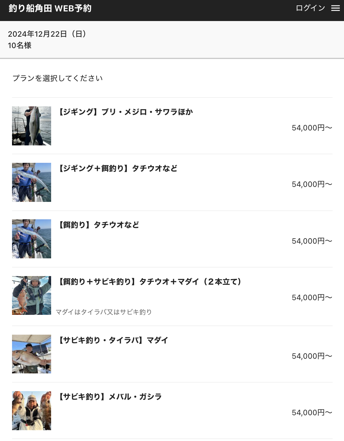 ③ご希望の釣りものメニューを選びご予約を進めてください