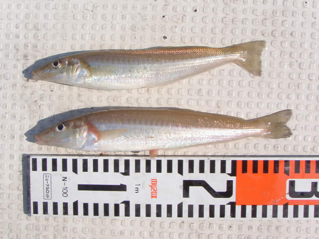 後半ともなると、バッチリ針掛りさせ、春の日を浴びた綺麗なパールピンクの25cmサイズのシロギスをゲット!!
