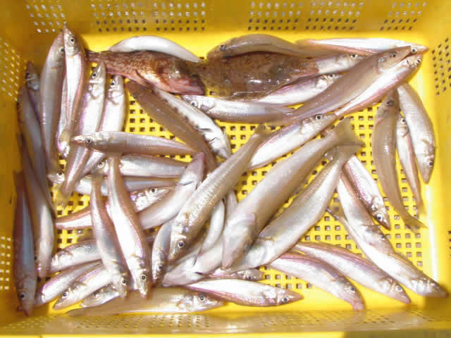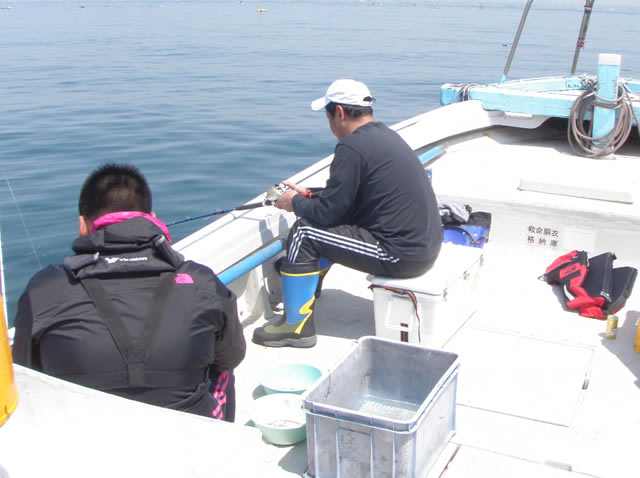 餌の付け方でタラシ3cm程度から始まり、天秤仕掛けですので、底取りを確認してもらい最初のほうは、シグナルがあっても、合わせのタイミングが合わずに苦戦しておられました。