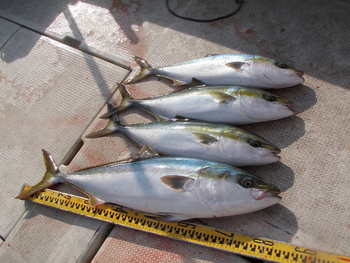 【魚種】ブリ:82cmを1匹、メジロ:60cmを3匹の釣果。