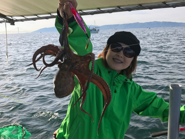 【コメント】タコエギでの釣果、竿頭は女性で13杯、少ない人で3杯でした。