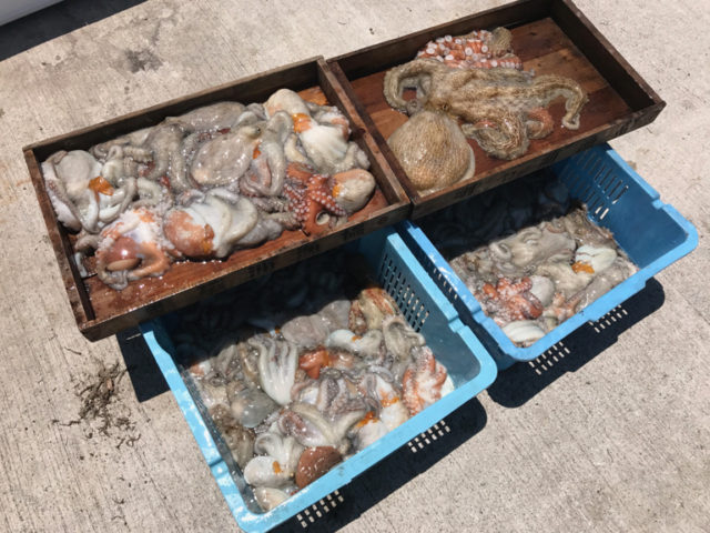 【魚種】マダコ:0.3kg~2.4kgまでを船中55杯。