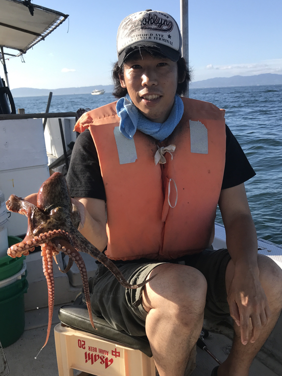 【魚種】マダコ:0.3kg〜1.2kgを船中39杯