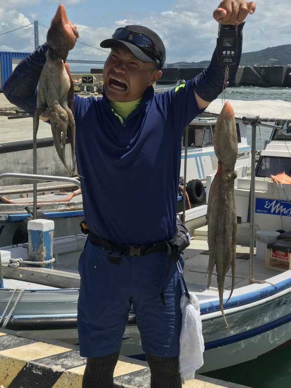 【コメント】片岡様マダコ1.8kgを頭に1.5kgを2杯ほかを、竿頭の人で17杯でした。
