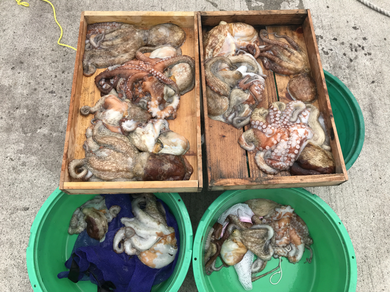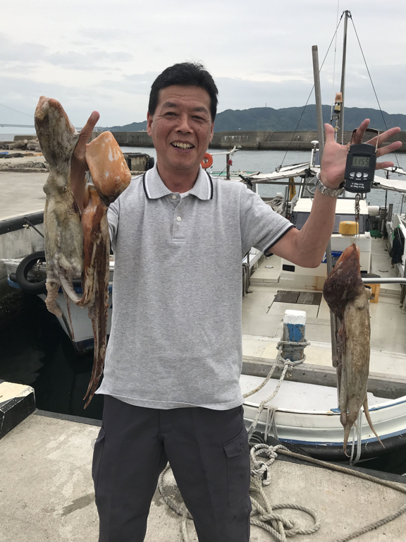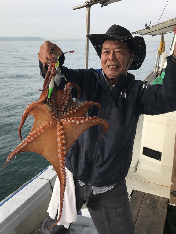 【コメント】4名様でマダコ釣りトップ9杯、3名様にはキロアップ上げていただけました。サイズ狙いで周りましたが、今までに無いバラシの数で一人平均3・4杯はバラシの数々、残念です。