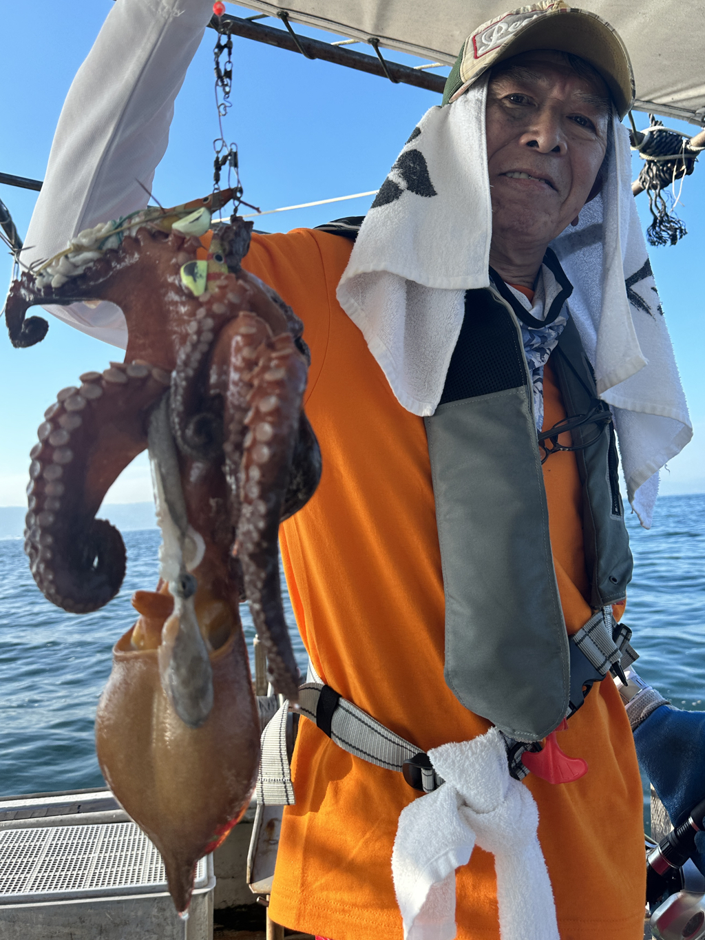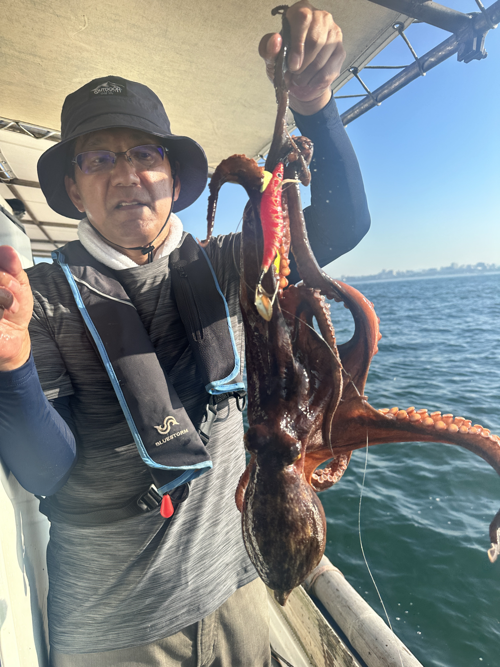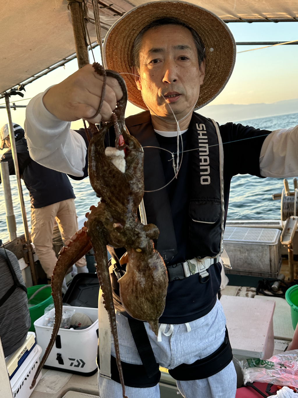 全体でマダコ釣果7杯〜2杯、内訳は7+5+5+4+4+3+3+3+3+2で船中39杯でした。