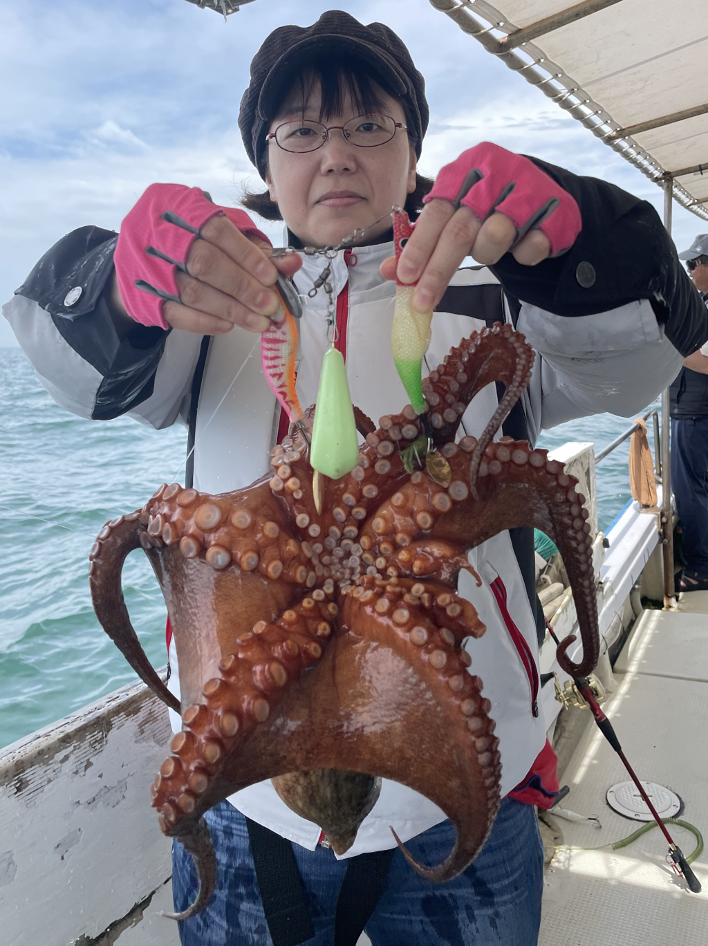 本日は、女性1名様含む9名様のマダコ釣りで出船しました