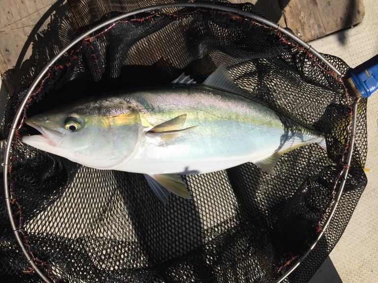 竿釣りで良く肥えたブリをその後、手釣りでメジロを上げました。