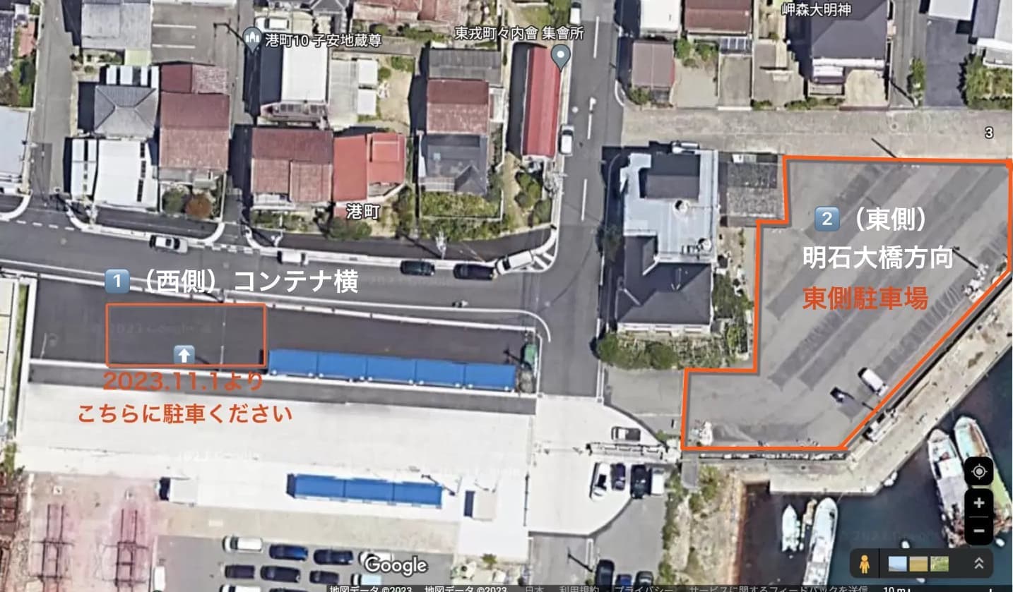 無ければ、2️⃣(東側)明石大橋方向《写真参照》で駐車ください