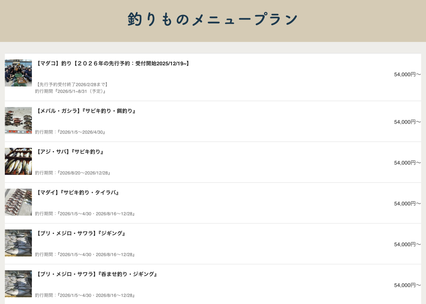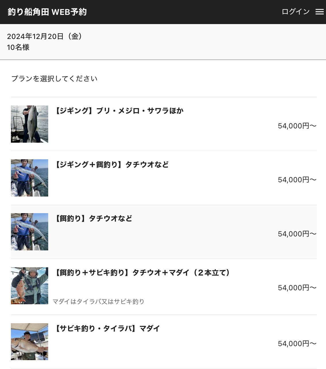 ③ご希望の釣りものメニューを選びご予約を進めてください