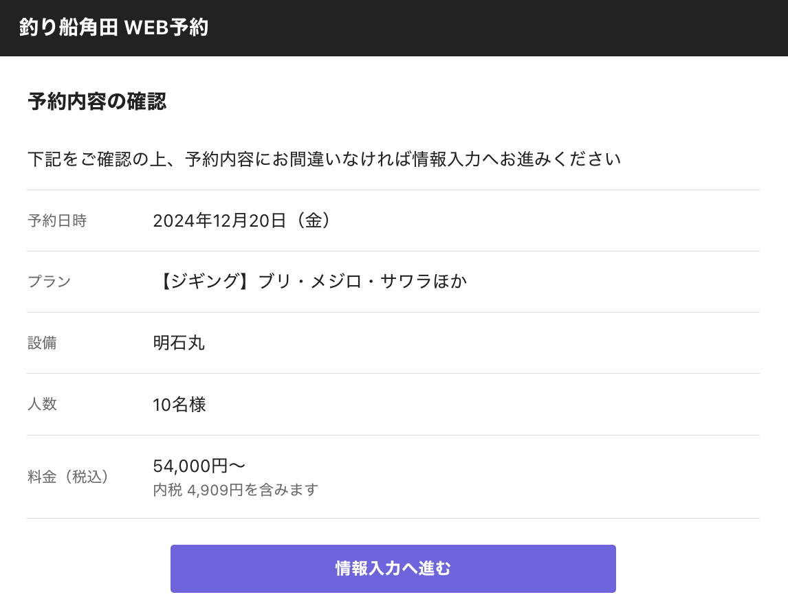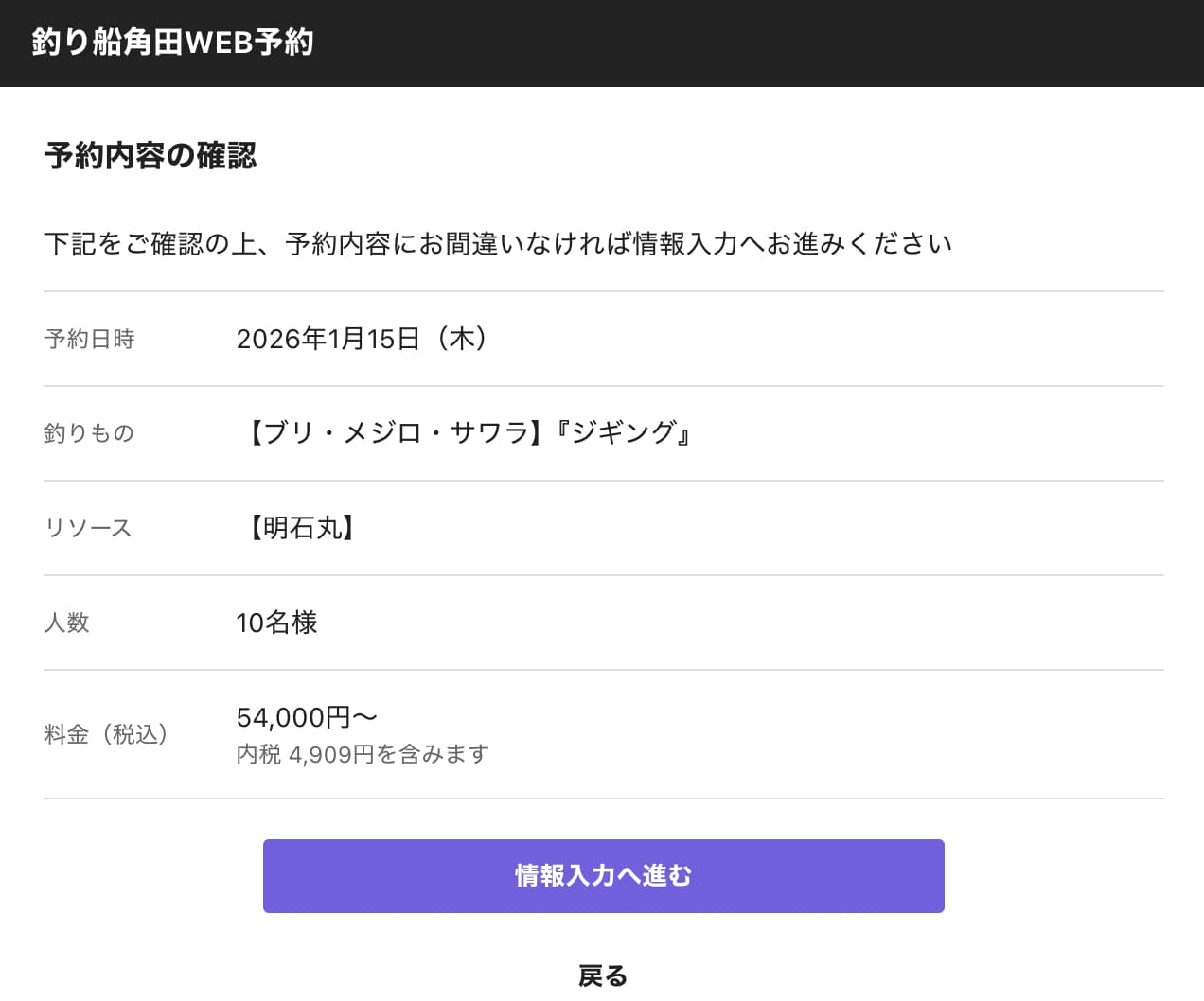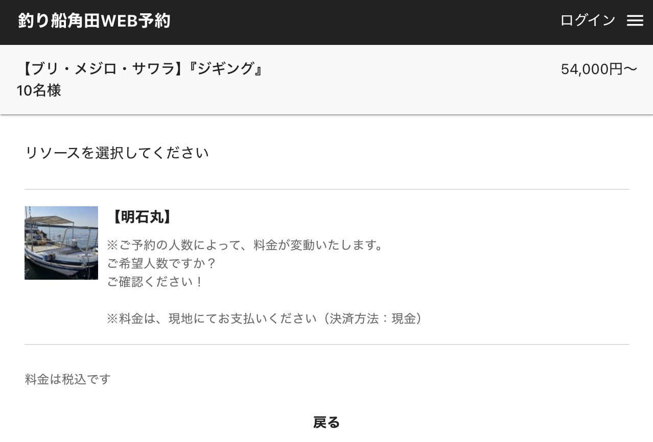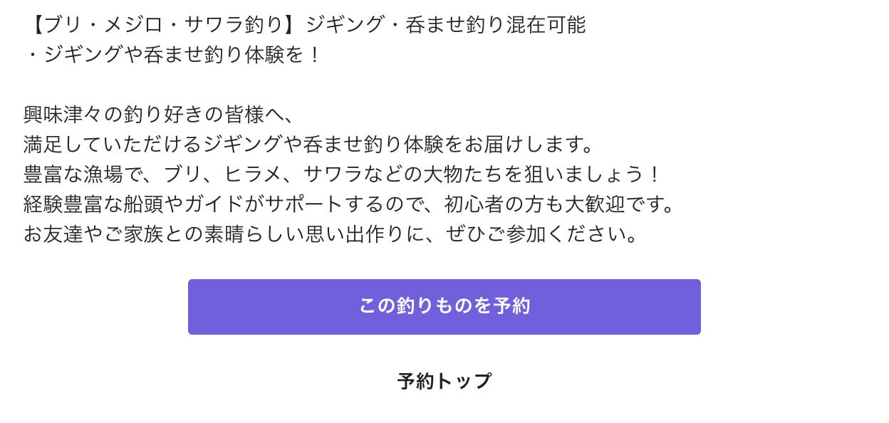 ここでは予約状況カレンダーで選んだ(ブリ・メジロ)ジギングを選んで進めます