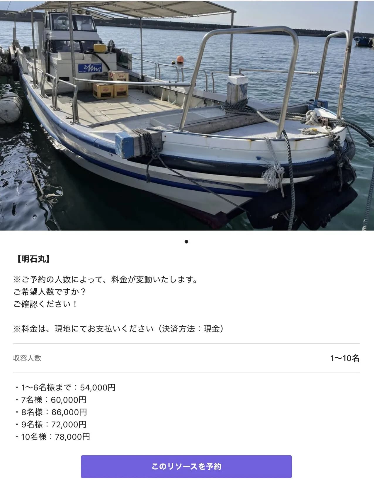 ⑦この明石丸の収容人数及び予約人数の料金が表示されます