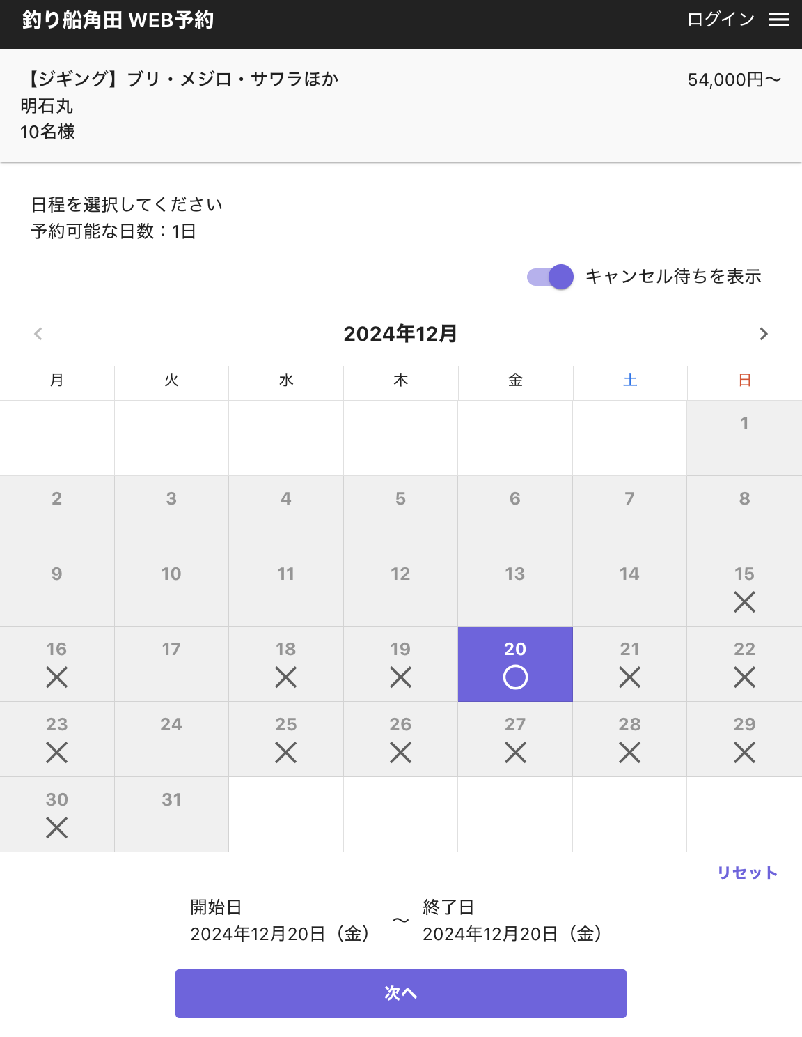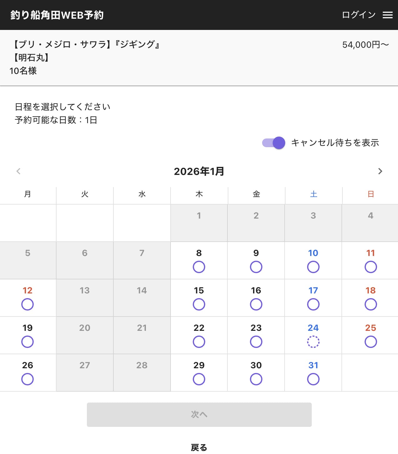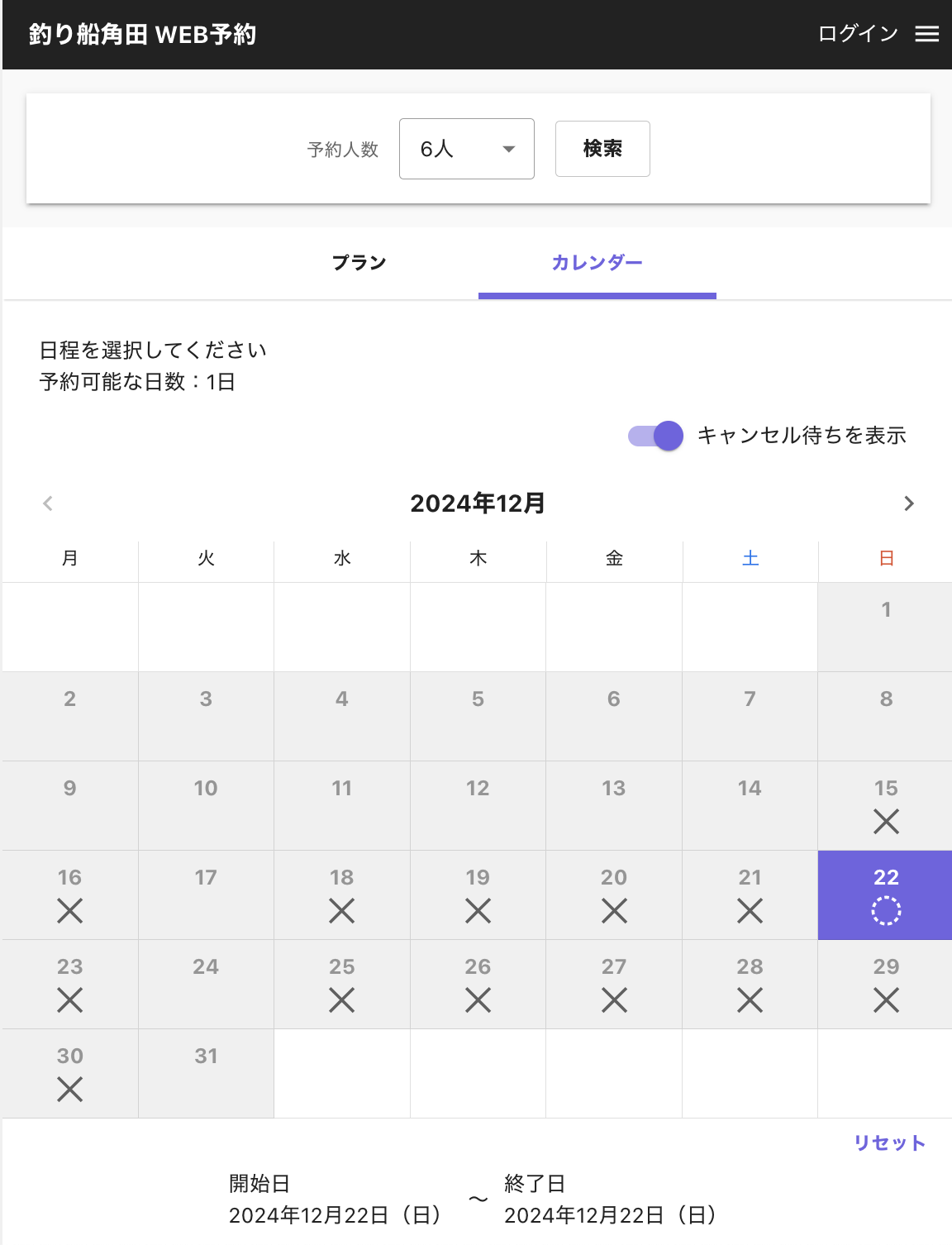 キャンセル待ち:釣り船角田WEB予約を開いてください