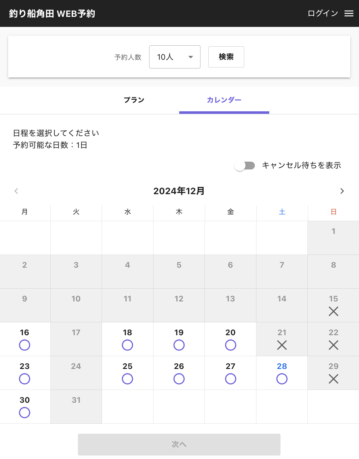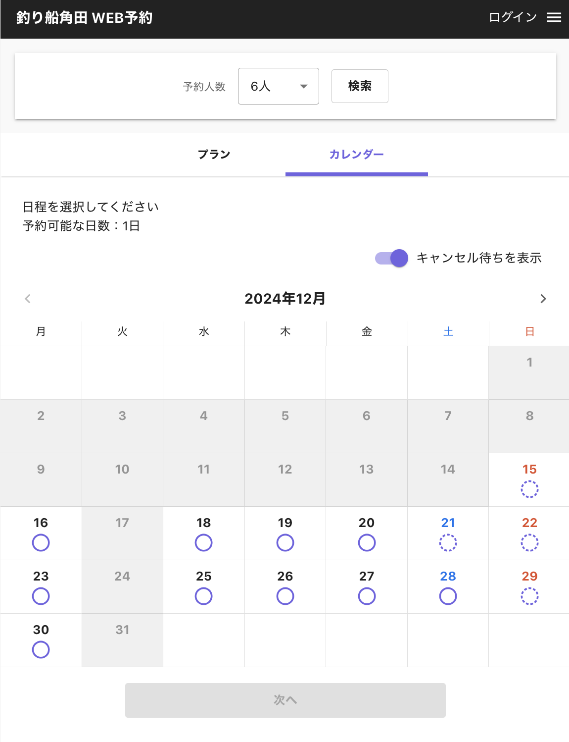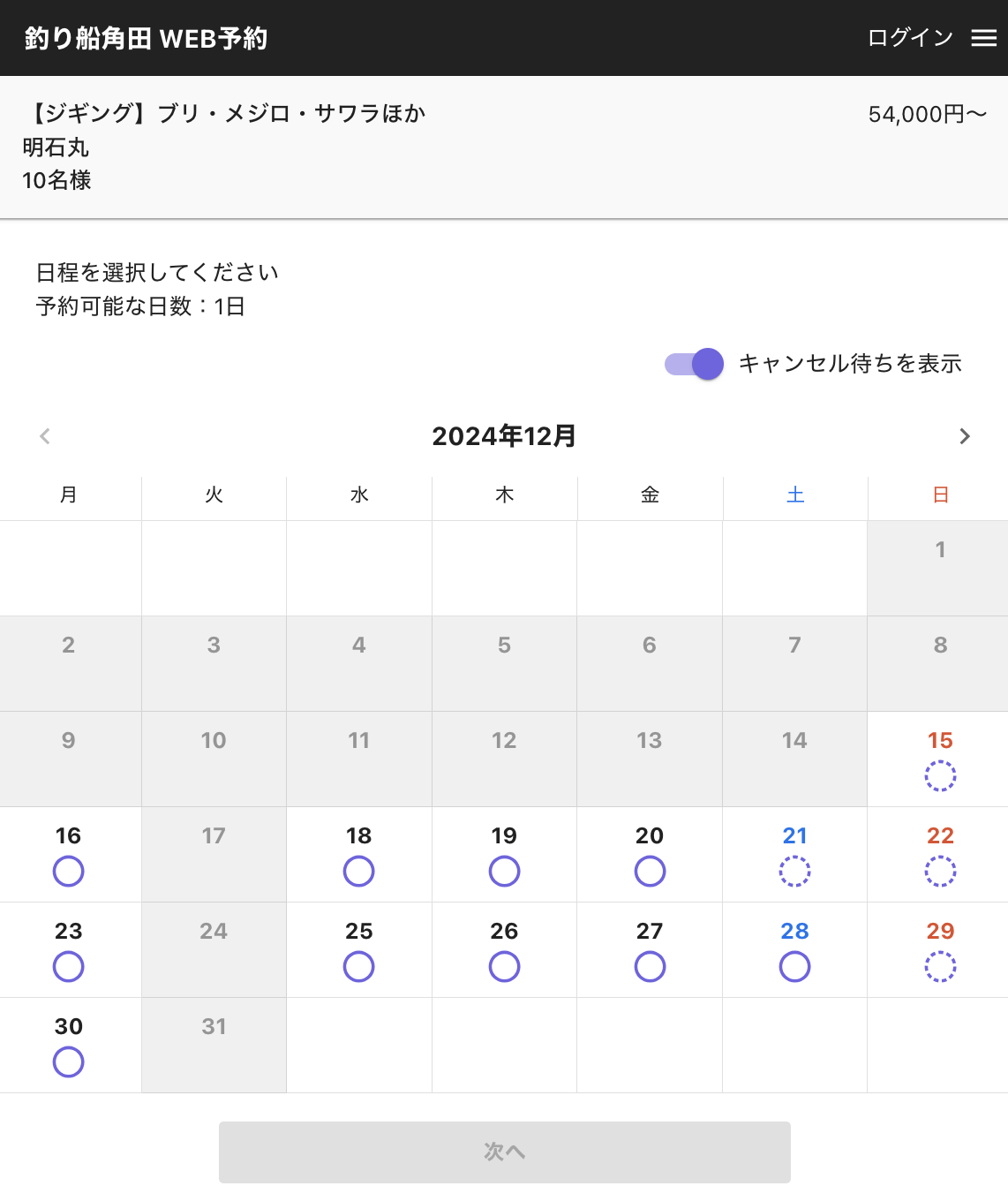 キャンセル待ち:釣り船角田WEB予約を開いてください